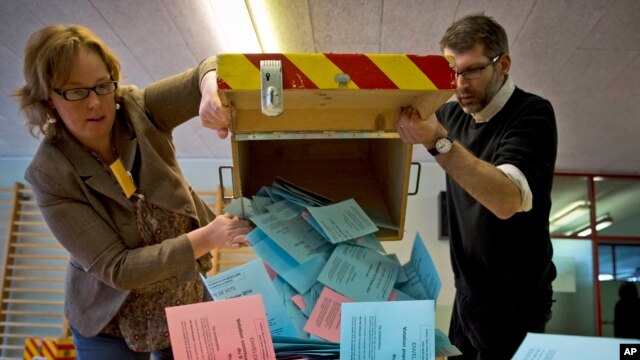 đổ thùng phiếu ra để kiểm sau cuộc trưng cầu dân ý. 9/2/14